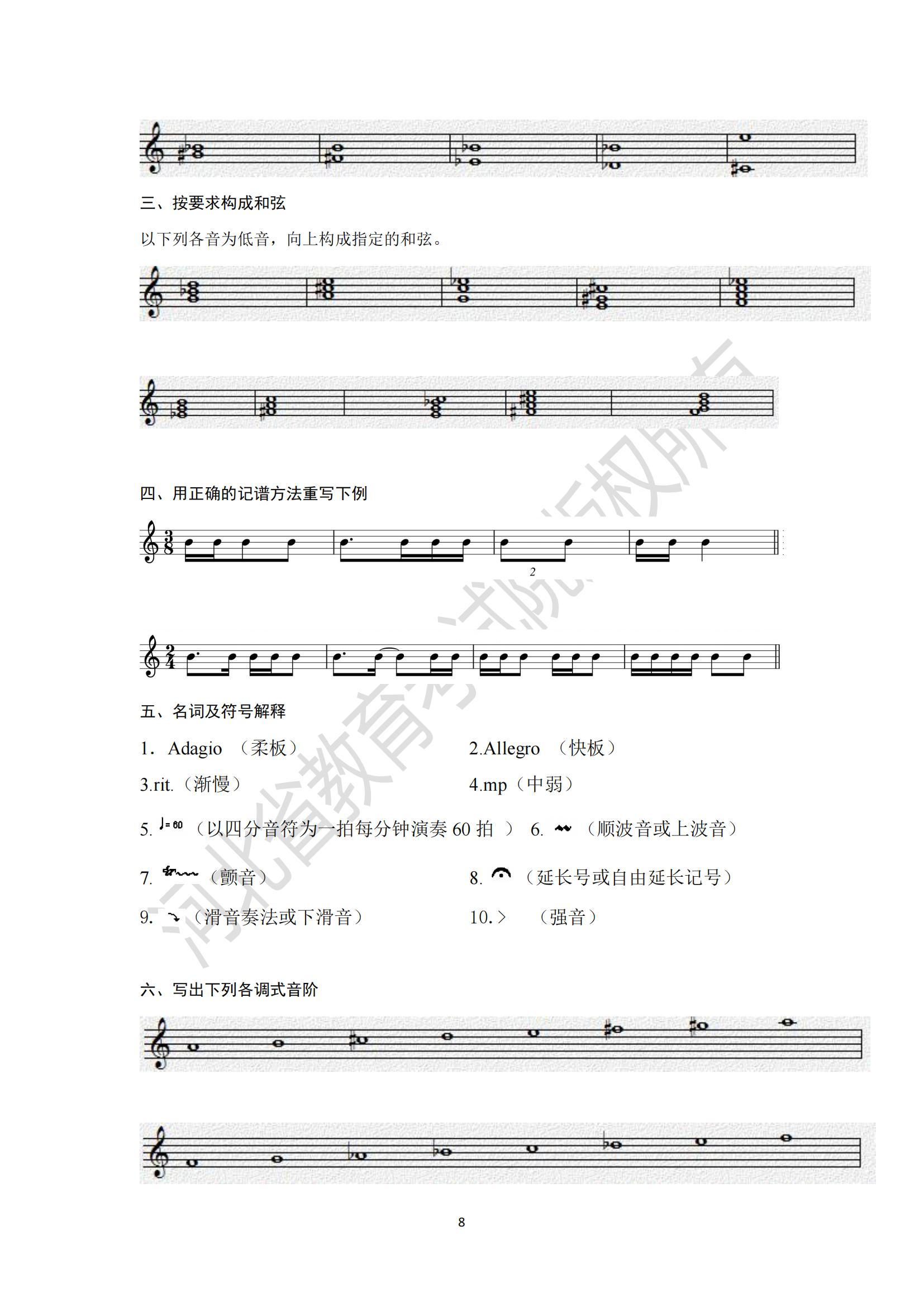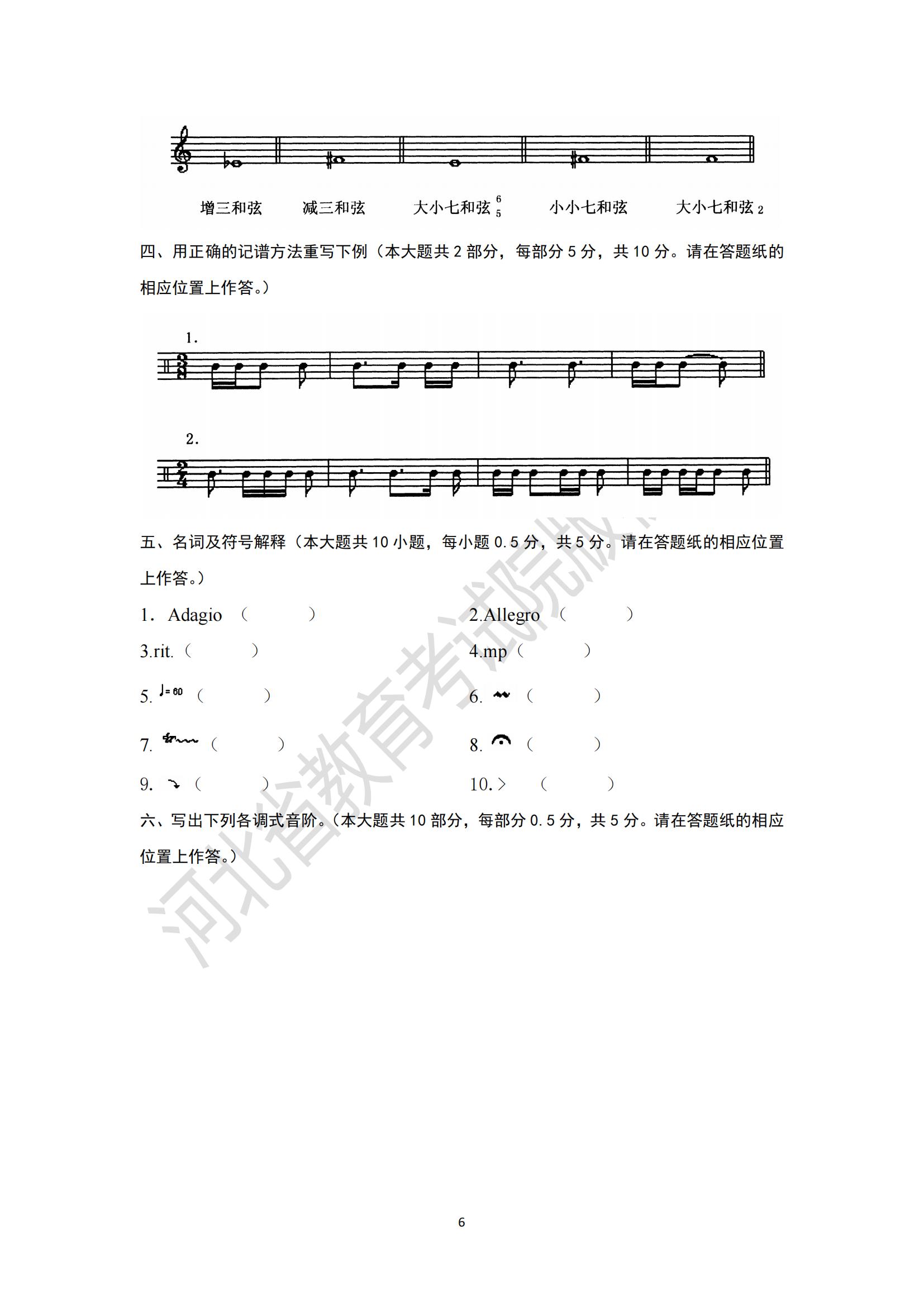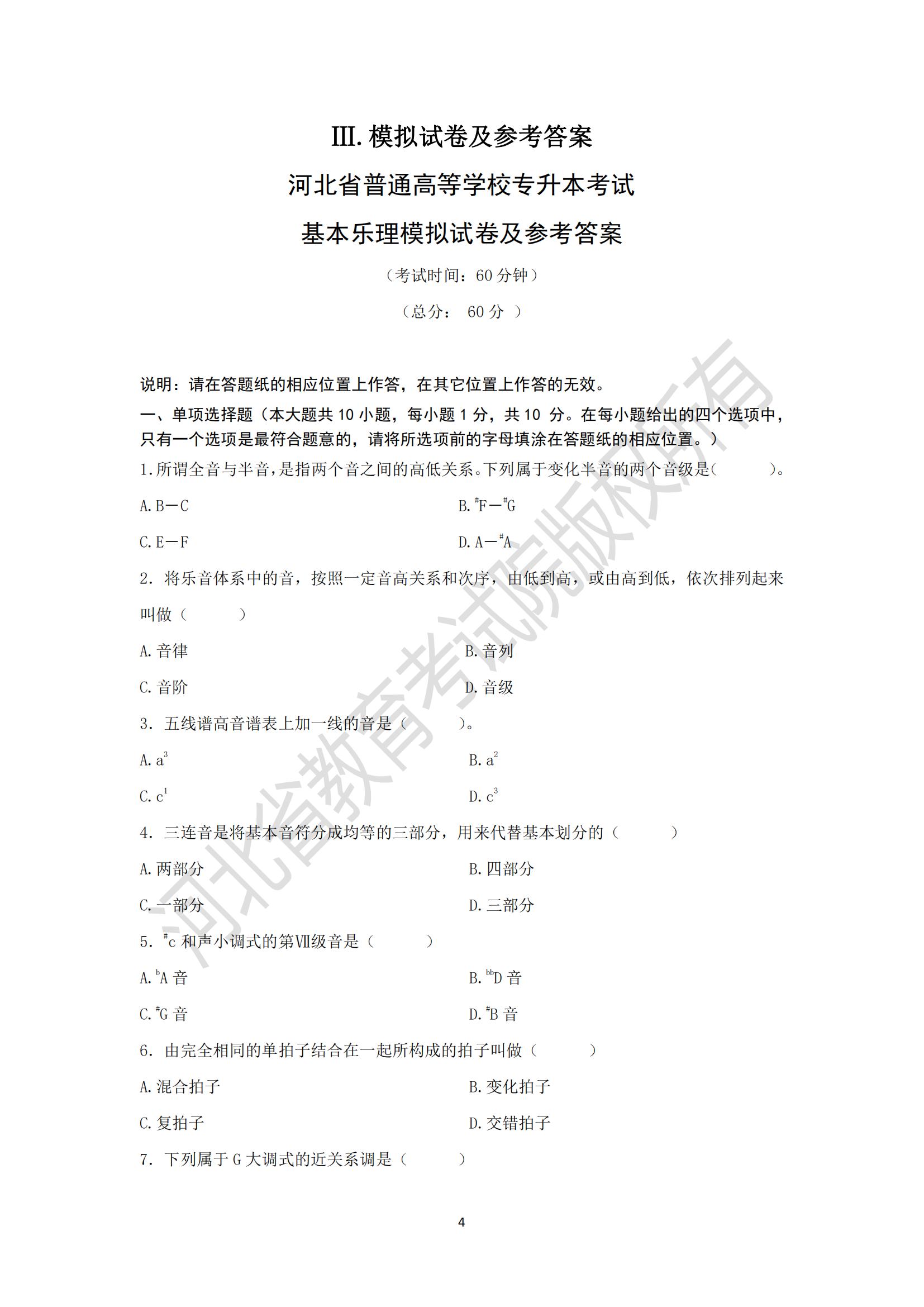 2025年河北省專升本考試藝術類基本樂理模擬試卷及參考答案