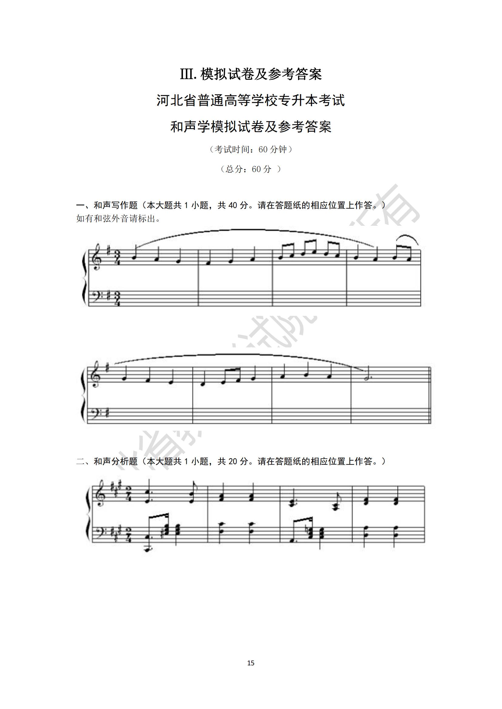 2025年河北省專升本考試藝術類和聲學模擬試卷及參考答案: