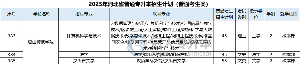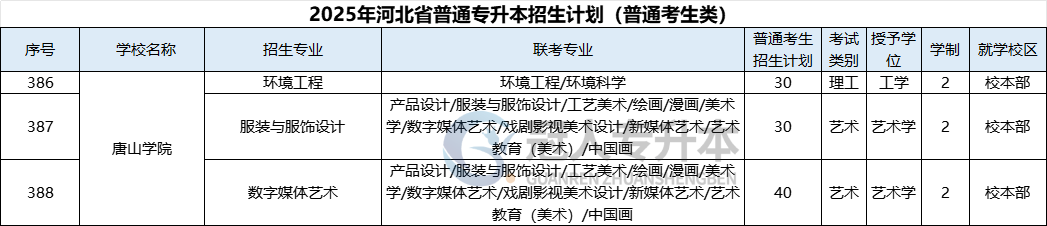 2025年河北省普通專升本唐山學(xué)院專升本招生計劃已公布,參加2025年河北專升本考試的考生請查看下表2025年唐山學(xué)院專升本招生計劃信息。