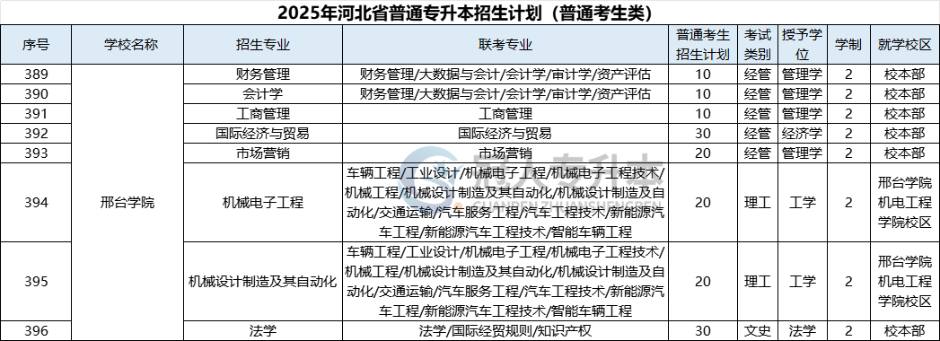 2025年河北省普通專升本邢臺學(xué)院專升本招生計劃已公布,參加2025年河北專升本考試的考生請查看下表2025年邢臺學(xué)院專升本招生計劃信息。