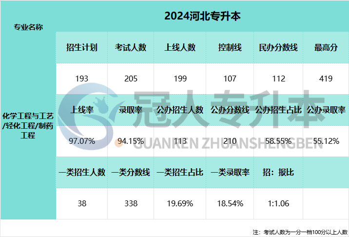 2025年河北省專升本考試將與2025年4月19日進行,河北專升本考試制藥工程專業公辦院校錄取率還沒有公布,參加2025年河北專升本考試的考生可以參考下表中2024年制藥工程專業公