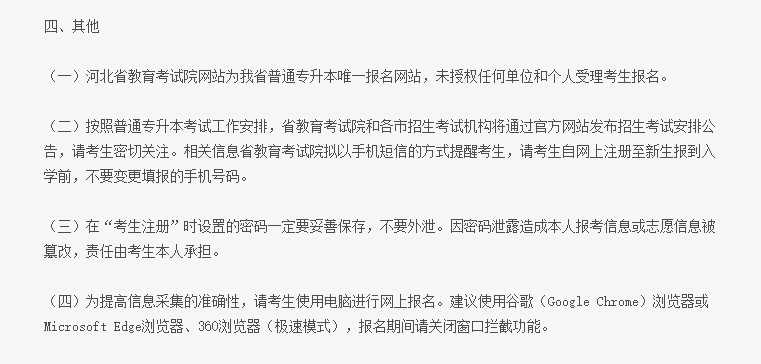 河北省專升本報名是不支持用手機報名的,河北教育考試院發布的關于2025年河北專升本報名公告中也有提示說明。